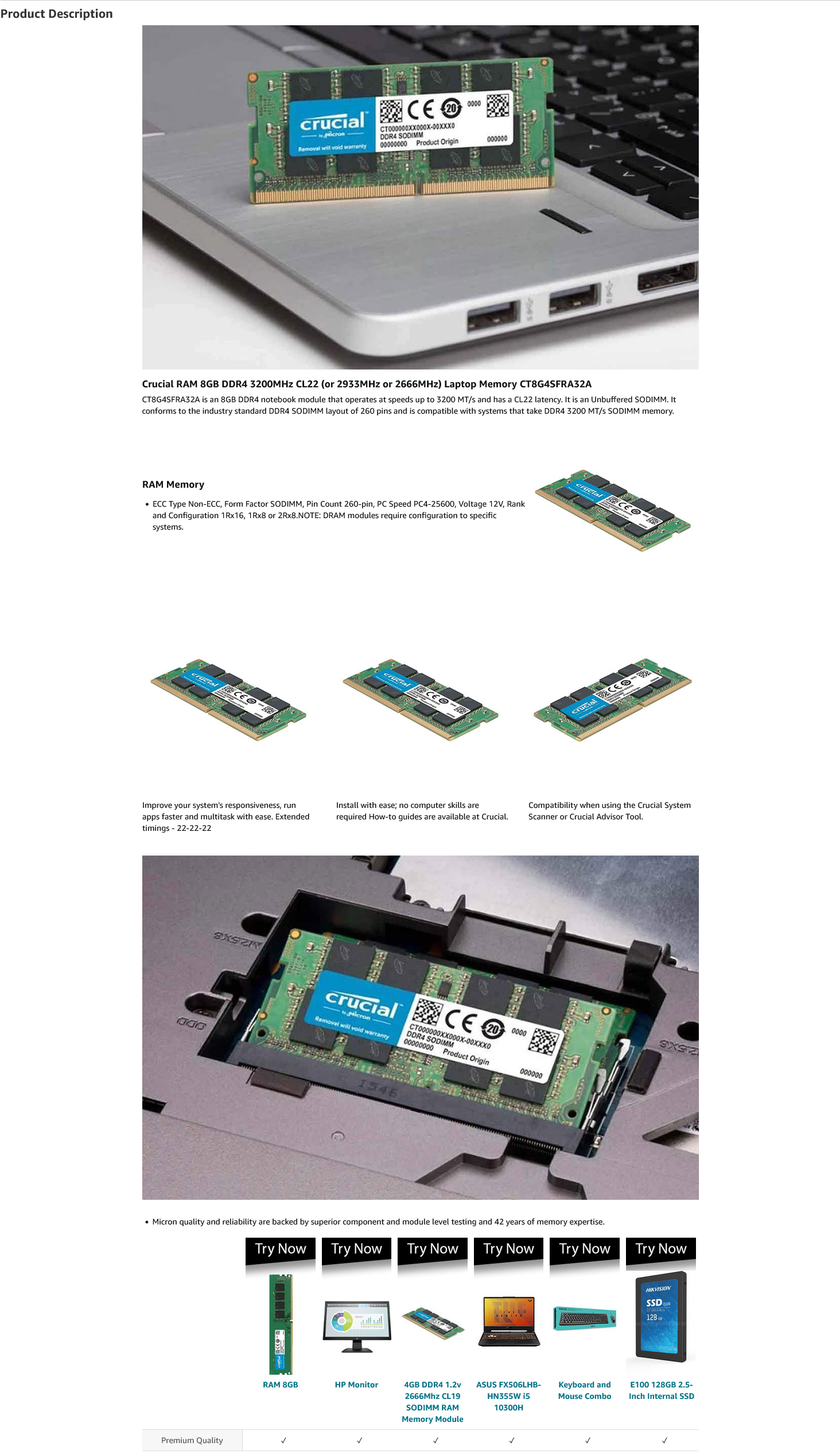| Manufacturer | Crucial, MICRON CONSUMER PRODUCTS GROUP(SINGAPORE)A DIVISION OF MICRON SEMICONDUCTOR ASIA OPERATIONSPTE. LTD.1 NORTH COAST DRIVE,SINGAPORE 757432 |