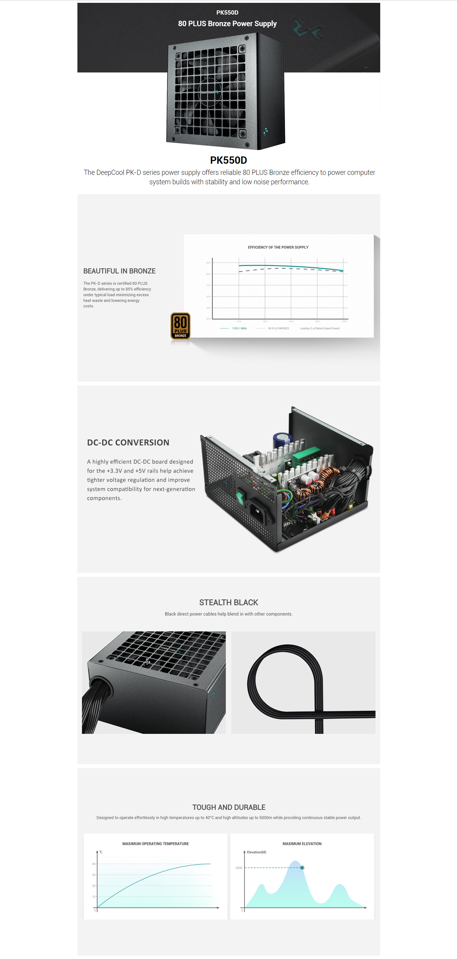 Deepcool PK550D, 550 Watt, 80 Plus Bronze Certified Power Supply/PSU for Gaming PC – R-PK550D-FA0B-UK