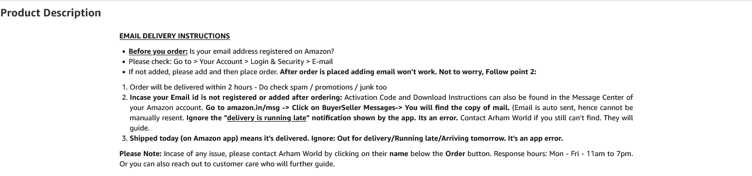 E-mails will be sent only to e-mail ID registered on Amazon.in; If you have not registered your e-mail ID, please do so before purchasing this product; It activates from INDIAN IP address only.
